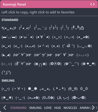 In addition to its extensive collection of kaomojis, Kaomoji Picker supports both light and dark themes, allowing users to choose a visual style that suits their preferences. This feature enhances usability across different environments and lighting conditions. Overall, Kaomoji Picker serves as a valuable addition to social networking experiences, making it easier than ever to convey emotions and creativity in digital communications.